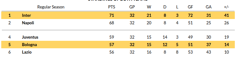 Despite this dip, Vincenzo Italiano’s men remain firmly in the UEFA Champions League (UCL) race, sitting just two points behind fourth-placed Juventus. With a Coppa Italia semi-final second leg looming (where they hold a 3-0 aggregate lead over Empoli), Bologna must balance priorities. Their home form has been stellar this season (W9, D6, L1), but Inter Milan pose a formidable challenge.