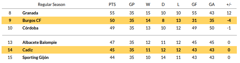 (Brian Ocampo 75′ for Cádiz; Álex Sancris 88′ penalty for Burgos) - Burgos’ last 6 matches: W4 D2 L0