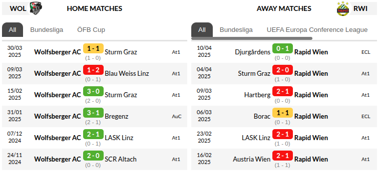 Wolfsberger’s lone home match this season ended in a draw, while Rapid Vienna continue to struggle on the road, winless in their last eight away fixtures (dating back to October 2024). This poor away form contrasts sharply with WAC’s strong home record against Rapid, including a comprehensive 3-1 victory in their last meeting at Allianz Stadion in February, where Markus Pink’s brace sealed the win.