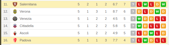 Padova Vs Salernitana Prediction: Standing