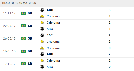 - In their previous encounter in November 2017, it was ABC who emerged victorious with a 3-1 win over Criciúma in their Serie B match.