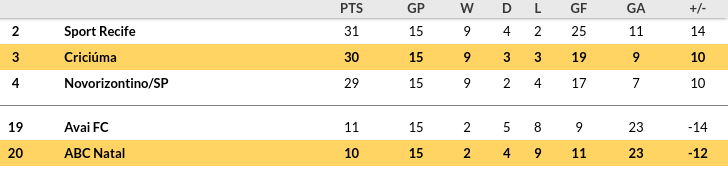 - On the other hand, Criciúma continued their impressive run with a 2-0 win over Sampaio Corrêa, extending their unbeaten streak to four matches, consisting of three wins and one draw.