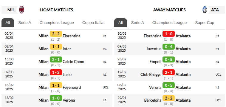 Atalanta, meanwhile, last played on Easter Sunday in 1978 (a loss to Inter). Fresh from ending a three-game losing streak with a 2-0 win over Bologna, they arrive with renewed confidence—despite managing just four shots in that victory. However, their 12-game unbeaten away run (W9, D3) was snapped by Fiorentina last time out, and another loss would mark only their second instance of back-to-back away defeats this season. Worryingly, the last time it happened was at San Siro against Inter.