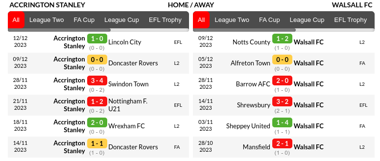 The teams’ last meeting saw Accrington emerge victorious with a 2-1 scoreline in their League One match against Walsall in April 2019.