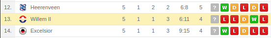 - Willem II on the other hand have won five matches, lost four and drawn in one in the last ten matches.