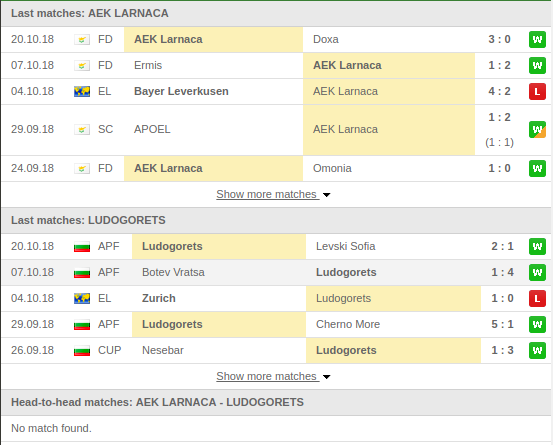 AEK Larnaca vs Ludogorets Razgrad Predictions: Head to head