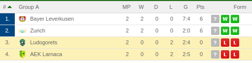 - AEK Larnaca strained to get to the Europa group stage but they are experiencing the worst moment having lost in the two games they have played against Zurich and Bayer Leverkusen.