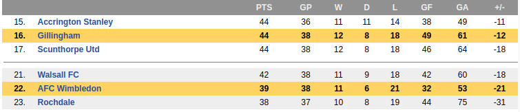 AFC Wimbledon vs Gillingham Prediction: Standing