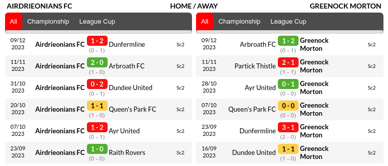In the previous Championship meeting between the two sides in September, Airdrieonians emerged victorious with a 1-0 scoreline at Cappielow Park, with Lewis McGregor scoring the decisive goal in the 32nd minute.