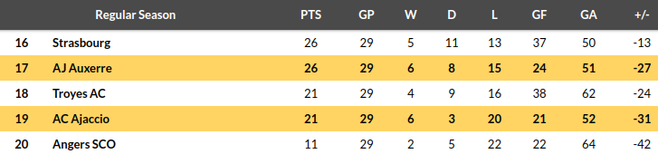 - They are level on points with Strasbourg, who are just outside the relegation zone. In their last six league games, Auxerre have won three, drawn two, and lost one.