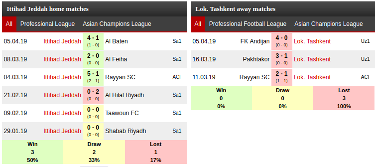 Al Ittihad Jeddah Vs Lokomotiv Tashkent Prediction: Home Away Matches