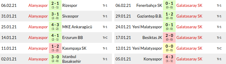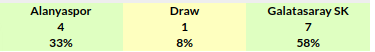 - Galatasaray have lost once from their last seven matches, and that defeat came in the hands of Alanyaspor they weekend opponents, although it was a cup game.