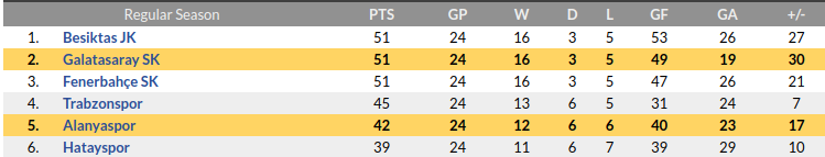 - They currently three points outside the top four and nine behind the top side Galatasaray.