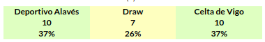 Alaves poor run will be a concern ahead of this tie which gives Celta Vigo much needed hope for a side that has struggled on the road this term. The Away side are currently floating in the middle of the table.