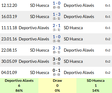 Huesca won in the reverse fixture, and that was their second win against Alaves in competitive matches.