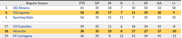 - Leganes are in the playoff places but have not cemented their spot yet. They are ten points behind the top two and six behind Girona.