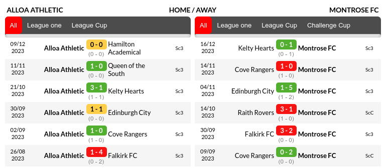 Looking at their recent form, Alloa Athletic has won three, drawn one, and lost two in their last six league matches. Montrose, on the other hand, has won two, drawn two, and lost two in their last six outings.
