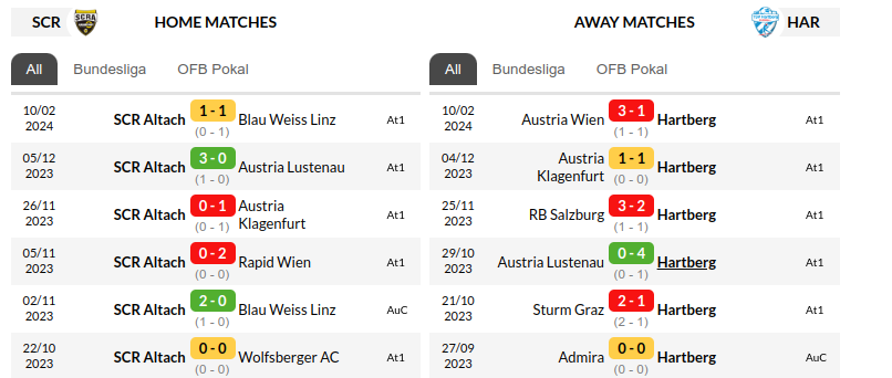 - Both teams drew their last league matches, Altach losing 2-1 and Hartberg drawing 0-0.