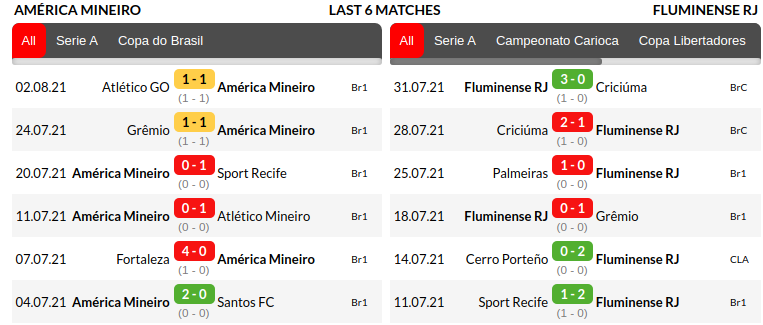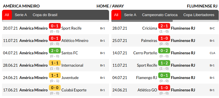 America Mineiro vs Fluminense Prediction: Home/Away Matches