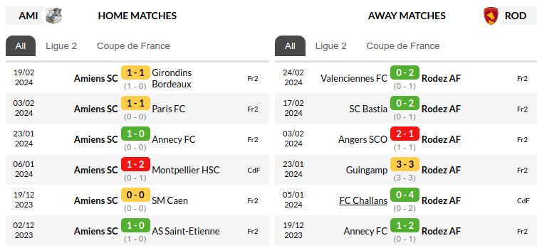 - Rodez are currently in better form, extending their unbeaten run to four games (two wins, two draws), while Amiens haven’t won in five matches (four draws, one loss).