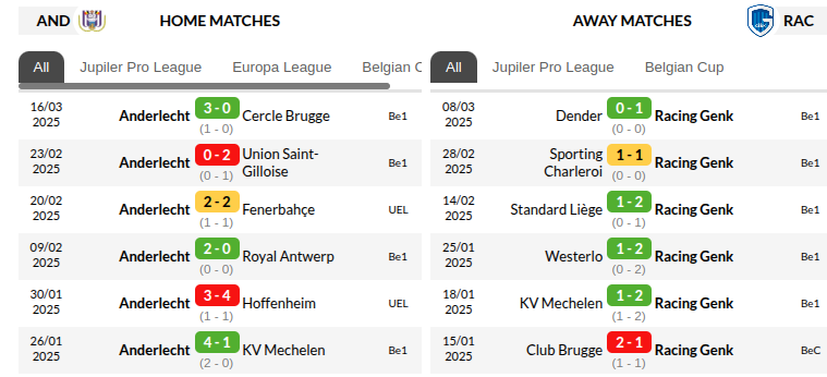 - Anderlecht boast a strong home record (15 wins in 20 matches)