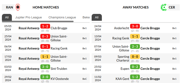 Historically, Antwerp has dominated head-to-head encounters against Cercle Brugge. They are currently unbeaten in their last eight league meetings, boasting seven wins and one draw. Their most recent encounter in April saw Antwerp secure a 1-0 victory at Jan Breydelstadion. This dominance is further highlighted by Antwerp outscoring Cercle Brugge 12-3 during this unbeaten streak.