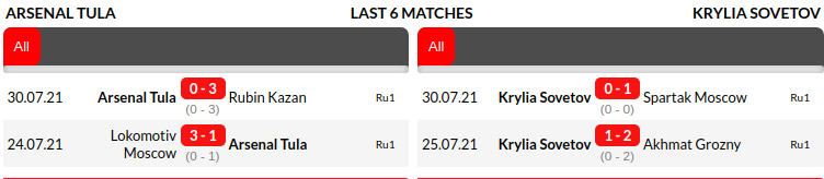 Arsenal Tula vs Kryliya Sovetov Prediction: Current Form