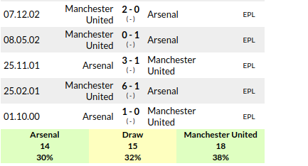 Arsenal vs Manchester Utd: H2H