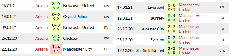 - Arteta has not lost to Manchester United since he took over with two of two wins.