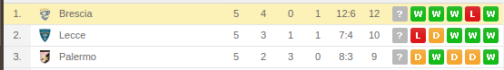 - On the road, Brescia is with one win, four draws and two defeats after playing seven away games.