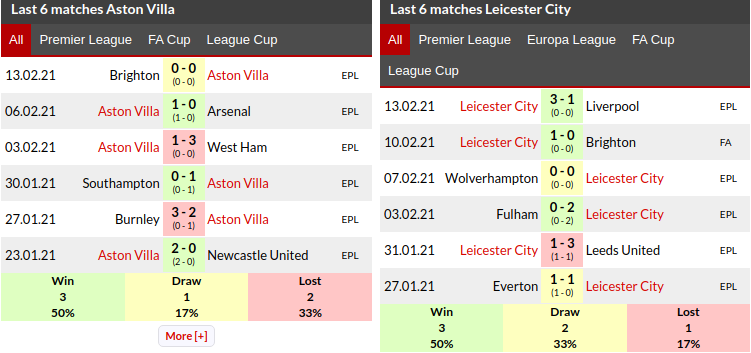 Aston Villa vs Leicester Prediction: Current Form