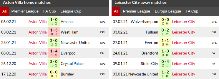 Aston Villa vs Leicester Prediction: Home/Away Matches