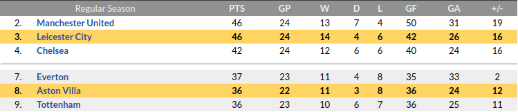 Aston Villa vs Leicester Prediction: Standing