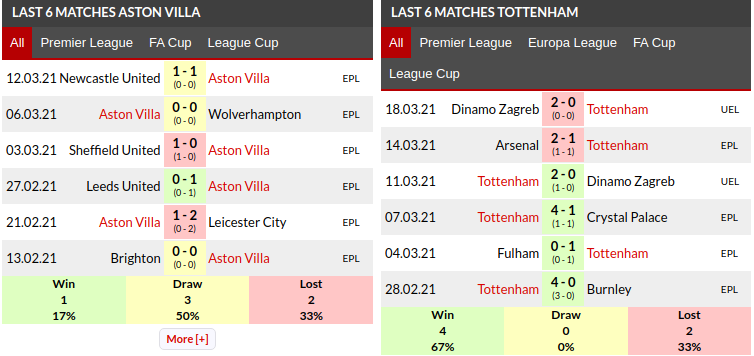 Aston Villa vs Tottenham Prediction: Current Form