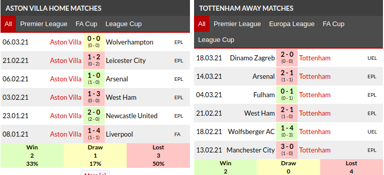 Aston Villa vs Tottenham Prediction: Home/Away Matches