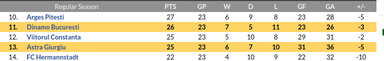 Astra Giurgiu vs Dinamo Bucuresti Prediction: Standing