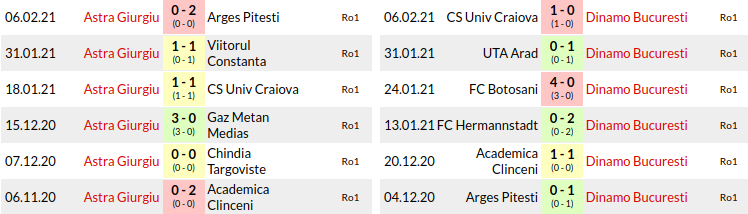 Astra Giurgiu vs Dinamo Bucuresti Prediction: Home/Away Matches