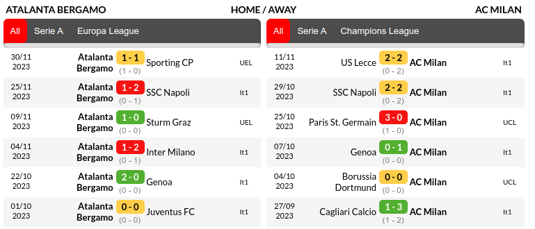 At Gewiss Stadium this season, Atalanta has recorded three wins, one draw, and two losses in six Serie A contests. Meanwhile, Milan has a strong away record with four wins, two draws, and one loss in league matches away from home this season. The Rossoneri aim to extend their four-match unbeaten streak away from home, having not suffered an away defeat since September 16 against Internazionale.