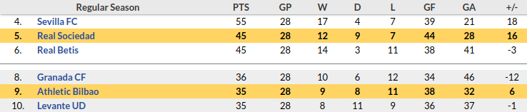 Athletic Bilbao vs Real Sociedad Prediction: Standing