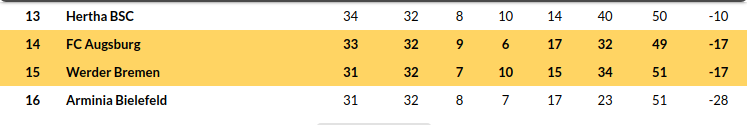 - The poor run just puts them two points above the relegation zone and their weekend opponents Werder Bremen. With two games to go a win here will secure their season.