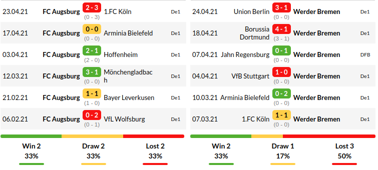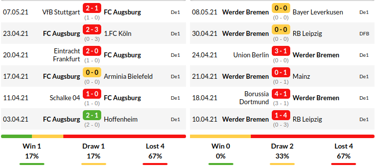 - Bremen are winless in their last six matches and have only claimed one win across ten matches in a period they have lost eight.
