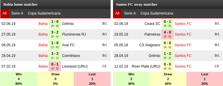Bahia BA Vs Santos Prediction: Home/Away Matches