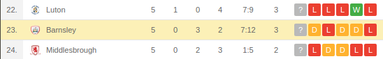 - Barnsley Win to Fulham in the opening fixture is the only win to their name and have lost 9 and drawn 6 on the process.