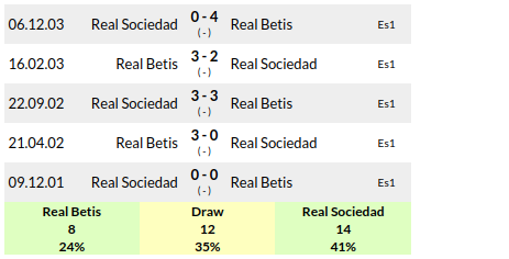 - Betis had won four games before the draw and were undefeated from their last 4 home matches.