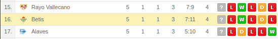 - The hosts lost their last match to Sevilla on the road. They are with three loses, one draw and one win in their last five games.