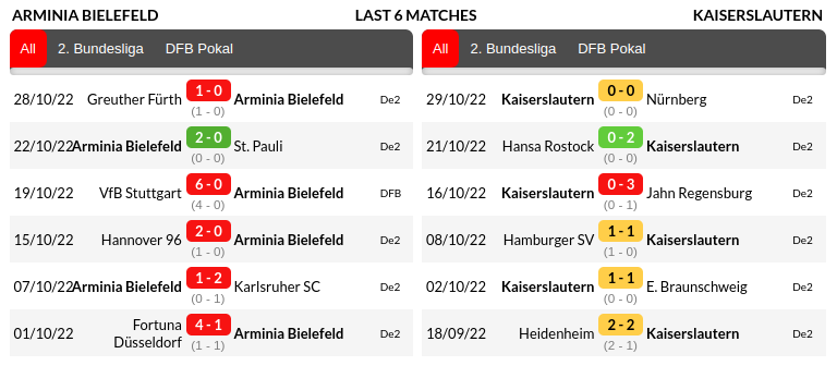 Bielefeld vs Kaiserslautern Prediction: Standing