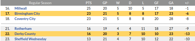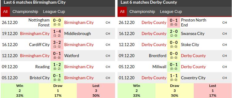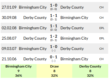 - On the road, Derby have managed just two wins from the 9 played with 3 draws and 4 defeats.