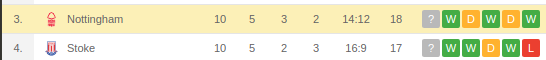 - Nottingham on the other picked up an important victory over Brentford in the midweek to move to the top three .