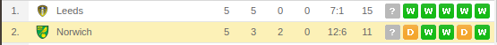 Norwich is second placed with forty four points thanks to the twenty two games placed so far of which they have earned them thirteen wins, five draws and four loses.