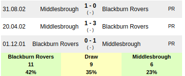 Blackburn have recorded two wins, two draws and one loss in their last five home meetings with Middlesbrough.